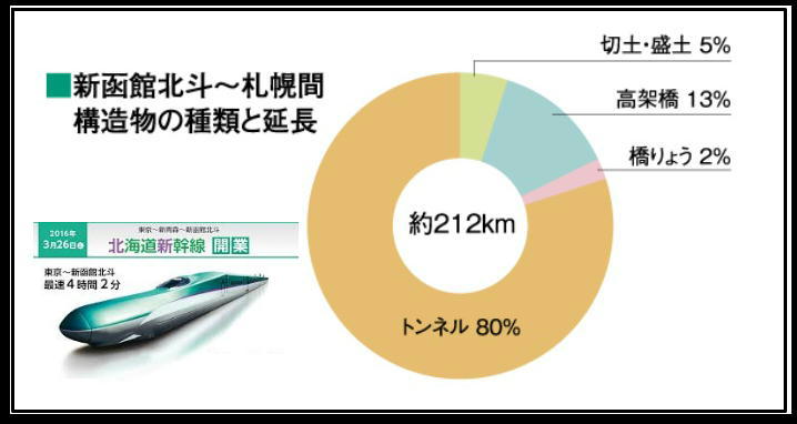 ・2030年に、函館から札幌(212㎞)まで開通予定で、いま工事が進行中です。