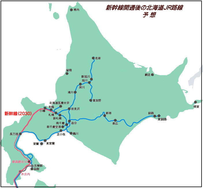 ・2030年以降、道東や道北から鉄道路線がなくなる危険性がある。